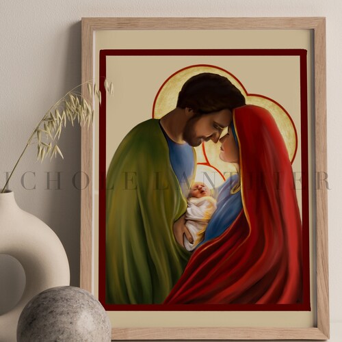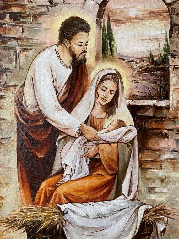 Religious Painting Joseph And Mary With Baby Jesus Art Etsy Uk