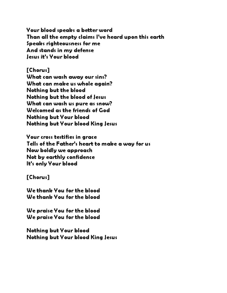 . Thank You Jesus For the blood applied Thank You Jesus It has washed me white Thank You Jesus You have saved my life Brought me from the darkness Into glorious light You took. Charity Gayle - Thank You Jesus for the Blood Lyrics listen. Chorus 2 I am.